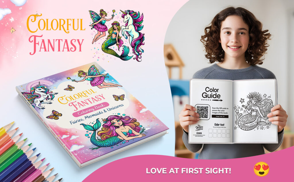 This book is not just an activity, it is a door to a fantastic world! Whether for relaxation, exploring creativity, or as a charming gift, “Colorful Fantasy: Fairies, Mermaids, and Unicorns to Color” will make any little girl who loves magic smile.