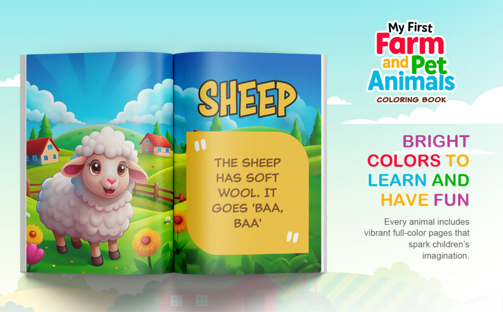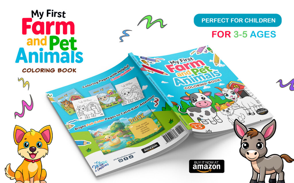 Discover ‘My First Farm and Pet Animals Coloring Book’, a fun and educational coloring book designed for children ages 3 to 5. This book helps little ones learn about their favorite animals while developing their coloring and language skills.